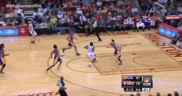 La vie d’un rookie n’est jamais facile en NBA. Forcé de devoir apporter des cookies ou des journaux à chaque entraînement, filmé en train de chanter une chanson ou de danser devant tout le monde, la première année chez les pros est un rite d’initiation capable d’en briser plus d’un. Et hier soir à Houston, Ryan Kelly a compris qu’il lui faudrait encore de longues heures d’entrainement avant de pouvoir être respecté dans la Ligue. De retour en défense avec James Harden qui arrive à toute blinde, le rook des Lakers s’est pris un Eurostep de dingue par le All Star des Rockets, lui offrant ainsi de grandes chances de se retrouver sur le Top 10 de demain. La feinte est de toute bôté.