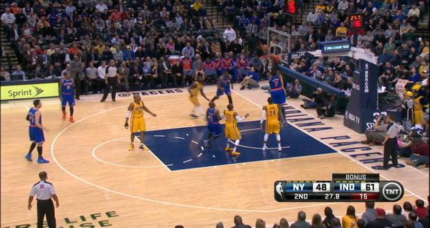 Ennemis intimes depuis des décennies, Knicks et Pacers ont pris la bonne habitude de se faire de belles embrassades à chaque fois qu’ils se rencontrent. Copie conforme à une précédente entrevue près du cercle lors du match 6 des dernières demi-finales de conférence, Roy Hibbert (11 points, 6 rebonds et 3 passes décisives) aime dire non à « Melo » (28 points et 7 rebonds) quand il s’approche un peu trop près de sa raquette. Ainsi, la symétrie est parfaite : un méchant contre en haute altitude et une nouvelle défaite pour les Knicks en déplacement (117-89).