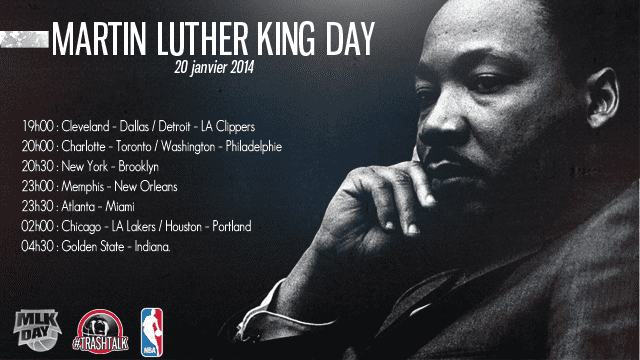 Mais dans quel lieu symbolique préférerez-vous vous installer ce Lundi 20 Janvier, pour profiter d’une soirée complète de basket placée sous le signe de l’amour universel ? Irons-nous marcher jusqu’à Washington tous ensemble, comme en ce Mercredi 28 Août 1963 où le pasteur y récita son fameux speech ‘I Have a Dream‘, pour y voir les Wizards recevoir les Sixers ? Où bien assisterons-nous à un nouveau désaccord entre Knicks et Nets, de la même façon que Luther King avait occupé les caméras new-yorkaises en s’opposant à la Guerre du Vietnam menée par Lyndon Johnson ? A quelques minutes près, Atlanta recevra le Heat et versera quelques larmes pour l’enfant de sa ville, pendant que Memphis replongera quelques instants dans le drame de son assassinat, aux côtés des Pélicans. Un passage aussi rapide que celui de Martin à Chicago lorsqu’il tentait de propager les mouvements civiques, la ville du vent aussi blessée par l’absence de sa star que par l’absence de reconnaissance envers MLK lors de la venue des Lakers ce soir. Trop d’histoires et de dates, d’événements et de rencontres : mais où l’Histoire s’écrira-t-elle ce Lundi 20 Janvier 2014 ?