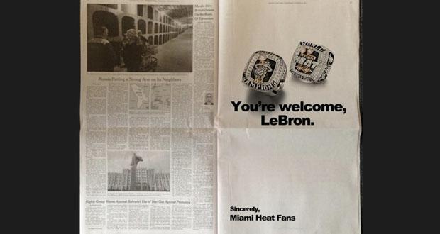 Manque de chance, sa publicité a été « poliment refusée » par la rédaction du quotidien en question. Pourtant, Le Batard a souhaité revenir sur le contenu de ce message, expliquant qu’il ne se voulait en aucun cas injurieux, mais désirait simplement faire savoir à Monsieur James qu’il aurait été souhaitable de glisser un mot ou deux aux fans de la Heat Nation à propos des quatre belles années qu’ils ont passé ensemble avant de s’envoler pour Cleveland.