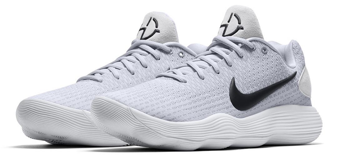 C’est la version Low qui cette fois-ci est dévoilée. Pour celle-ci, Nike nous propose un coloris clair qui se base sur beaucoup de blanc sur l’empeigne, un peu de gris de part et d’autres ainsi qu’un Swoosh en noir sur les panneaux latéraux. Du noir qui se retrouve sur l’autre logo présent sur la paire, le HD au niveau de la languette. En ce qui concerne les matériaux, on notera que la base est en tricot avec des motifs jacquard et certains détails sont en cuir bovin sur le talon et la languette. En prime, on constate que la semelle intermédiaire reprend la mousse Lunarlon, une technologie apprécié des runners. D’ailleurs, le look général de la paire rappelle celui des pompes pour courir. Ce qui n’empêchera certainement pas de nombreux joueurs NBA de les chausser sur les parquets de la Ligue, le modèle étant habituellement très prisé, et adapté avec des Player Exclusives.