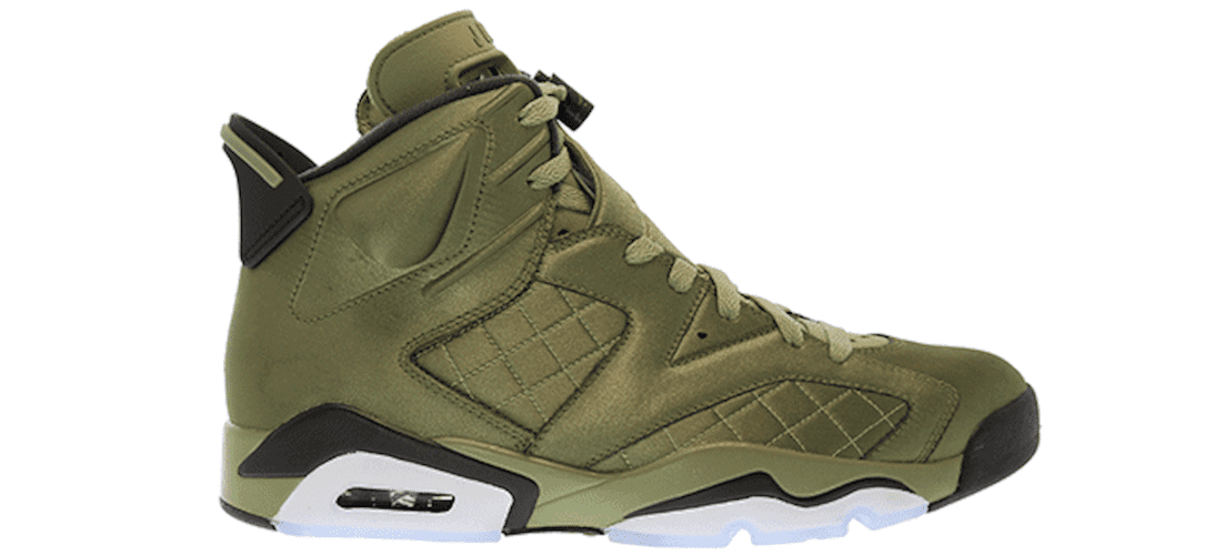 Retour en 1991 donc pour ce modèle, quand Michael Jordan s’était pointé sur le plateau du Saturday Night Live. Ce jour-là, il est arrivé vêtu d’un bomber matelassé couleur olive dans la pure tradition des fringues WTF qui sied tant à Mike. En hommage à ce magnifique instant mode, Jordan Brand balance une édition limitée des Air Jordan 6 dont le design reprend ce thème, avec là encore un aspect matelassé sur les panneaux latéraux. La teinte utilisée est la même que celle de la veste, complétée tout de même par un peu de noir et de blanc au niveau de la semelle qui disposera également de parties translucides.