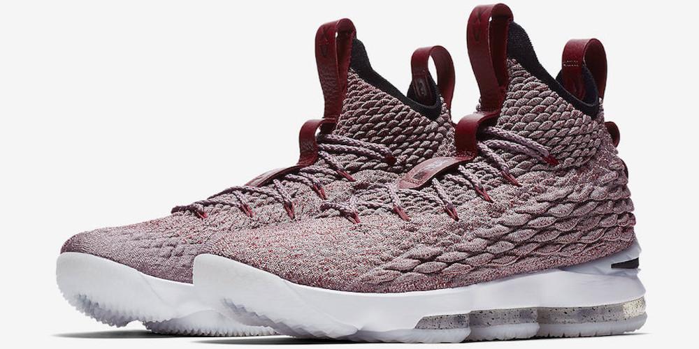 Encore un coloris pour les LeBron 15 de Nike, le premier qui semble pouvoir se marier un minimum avec les couleurs des Cavaliers. Car si la version claire Ghost ou celle plus foncée Ashes sont plutôt passe-partout – du moins au niveau des teintes – ce modèle Shade of Red nous rappelle tout de même plus les maillots alternate de la franchise de Cleveland.