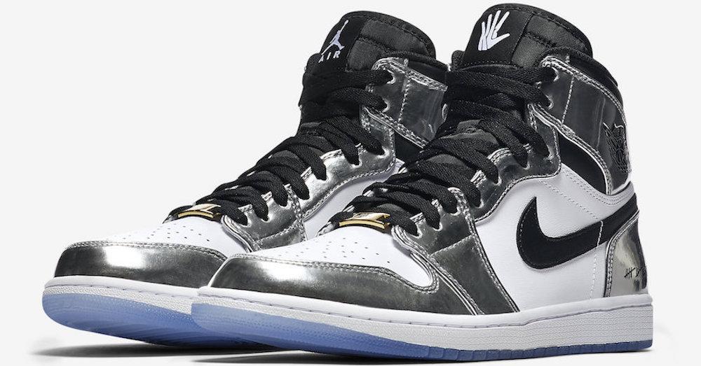 Après s’être affrontés en 2013, Spurs et Heat se retrouvent pour une revanche l’année suivante. Alors que les deux franchises sont à égalité au moment de quitter le Texas, Kawhi Leonard va définitivement faire pencher la balance en faveur des Texans lors du Game 3 en s’imposant aux yeux du monde comme la relève des troupes de coach Pop’. Avec 29 pions grâce à un sublime 10 sur 13 au tir, l’ailier qui boucle sa troisième saison NBA seulement bascule dans le royaume des top players, surtout qu’il enchaîne deux autres prestations à 20 points et plus pour donner le titre à des Spurs qualifiés de vieillissant, succédant entre autres à Tim Duncan et Tony Parker au palmarès du trophée Bill Russell du MVP des Finales. Du coup, pour célébrer cette belle époque pour Kawhi alors qu’il soigne actuellement son quadriceps, les Air Jordan 1 prennent les couleurs des Spurs avec du noir, du blanc et du gris, même si cette dernière teinte est en fait de l’argenté. On notera aussi le logo « Klaw » est présent sous la semelle translucide.