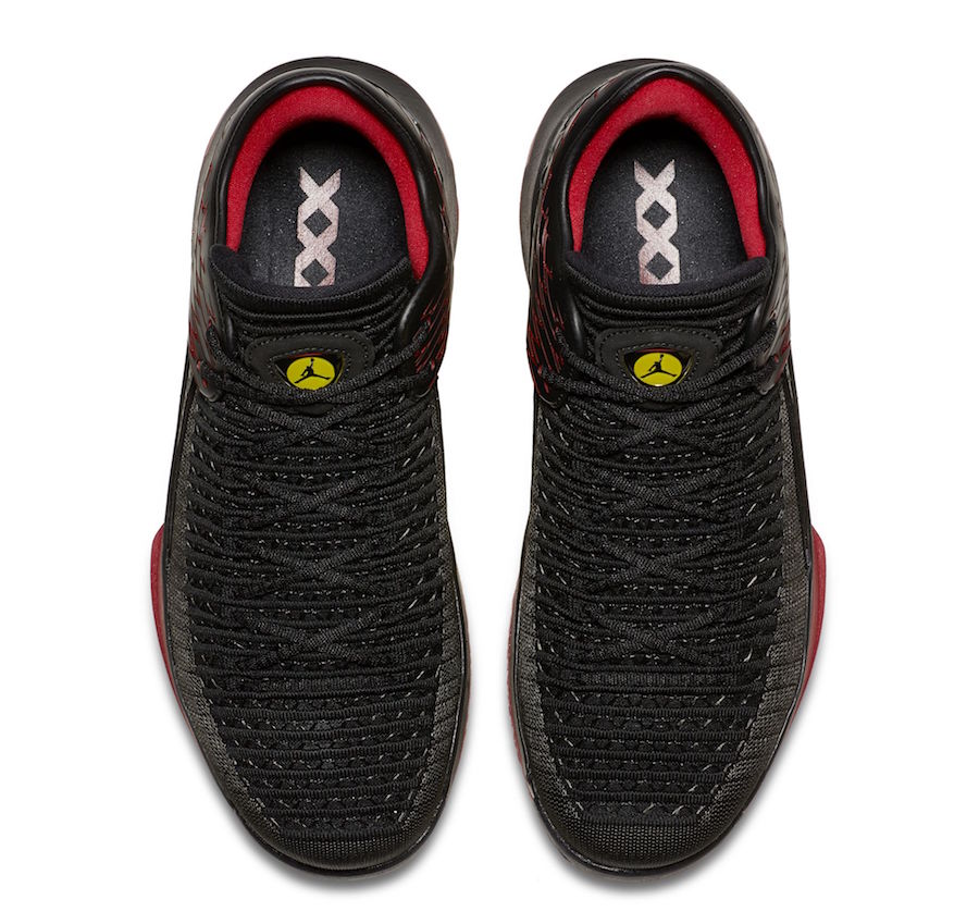 On s’arrête donc pour commencer sur les dernières pompes de Mike qui débarquent donc en mode Last Shot et en tige basse. Sans surprise, c’est le mélange populaire entre rouge et noir qui s’accapare la majorité du modèle. Il faut dire que lorsque Jordan a réalisé cette action décisive, les Air Jordan 14 qu’il avait aux pieds étaient suivant ce thème qui sied fort bien aux couleurs des Bulls lorsqu’ils évoluent à l’extérieur. La base est donc de la teinte sombre, alors que les détails s’affichent donc plus chaudement, tout comme la semelle, aussi bien extérieure qu’intermédiaire. On notera aussi forcément le Jumpman sur la languette dans un style Ferrari. On ne voit pas le rapport, mais pourquoi pas après tout. En tout cas il remplace le logo Wings qu’on voit habituellement sur les Air Jordan 32.