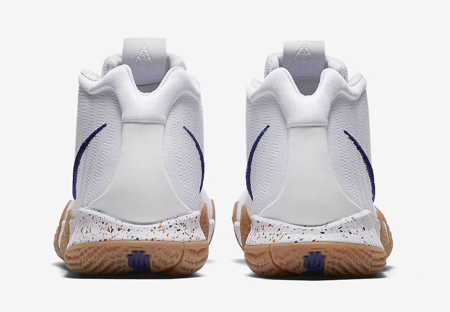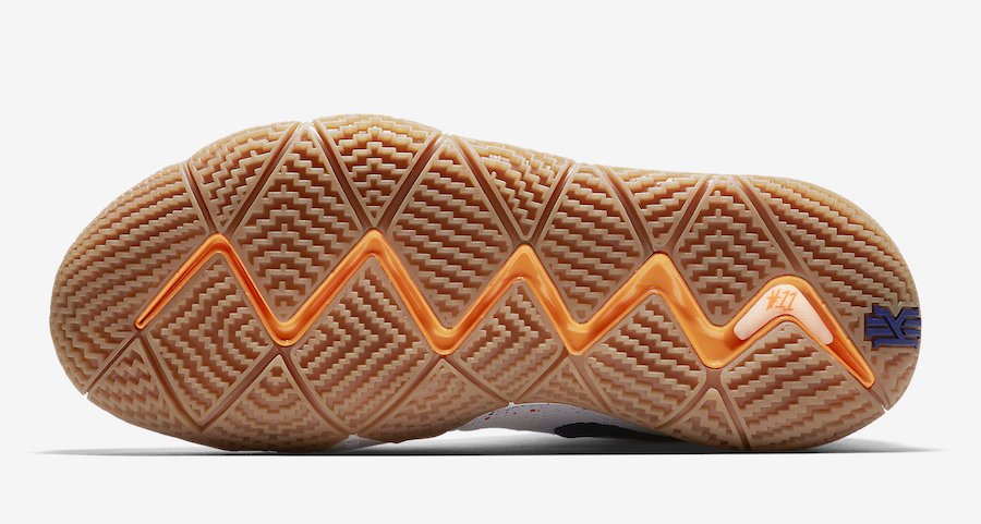 On ne va pas vous faire le speech du film dans cet article, on vous laissera tranquillement retourner mater les pubs où un Kyrie Irving vieilli met la misère aux jeunes sur les playgrounds ou alors jeter un œil aux bandes annonces qui pullulent sur les sites de streaming. En effet, on va juste se contenter de parler sneakers et d’évoquer ce coloris Uncle Drew des Kyrie 4, une version beaucoup plus simple et classique que le jeu du meneur des C’s, qu’il soit sur les parquets NBA avec un maillot vert ou déguisé dans la rue. On se la joue propre chez Nike avec une partie supérieure blanche ou seuls les Swoosh et le logo KI de la languette viennent apporter du contraste avec leur bleu. Pour poursuivre dans le banal, la semelle extérieure est en gomme résistante. On notera tout de même l’effort de mette quelques petites tâches de plusieurs couleurs sur la semelle intermédiaire, seule détail pouvant sortir de l’ordinaire.