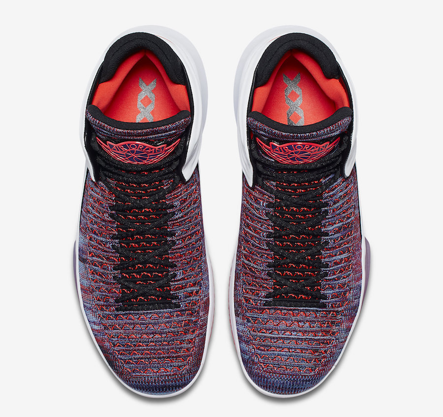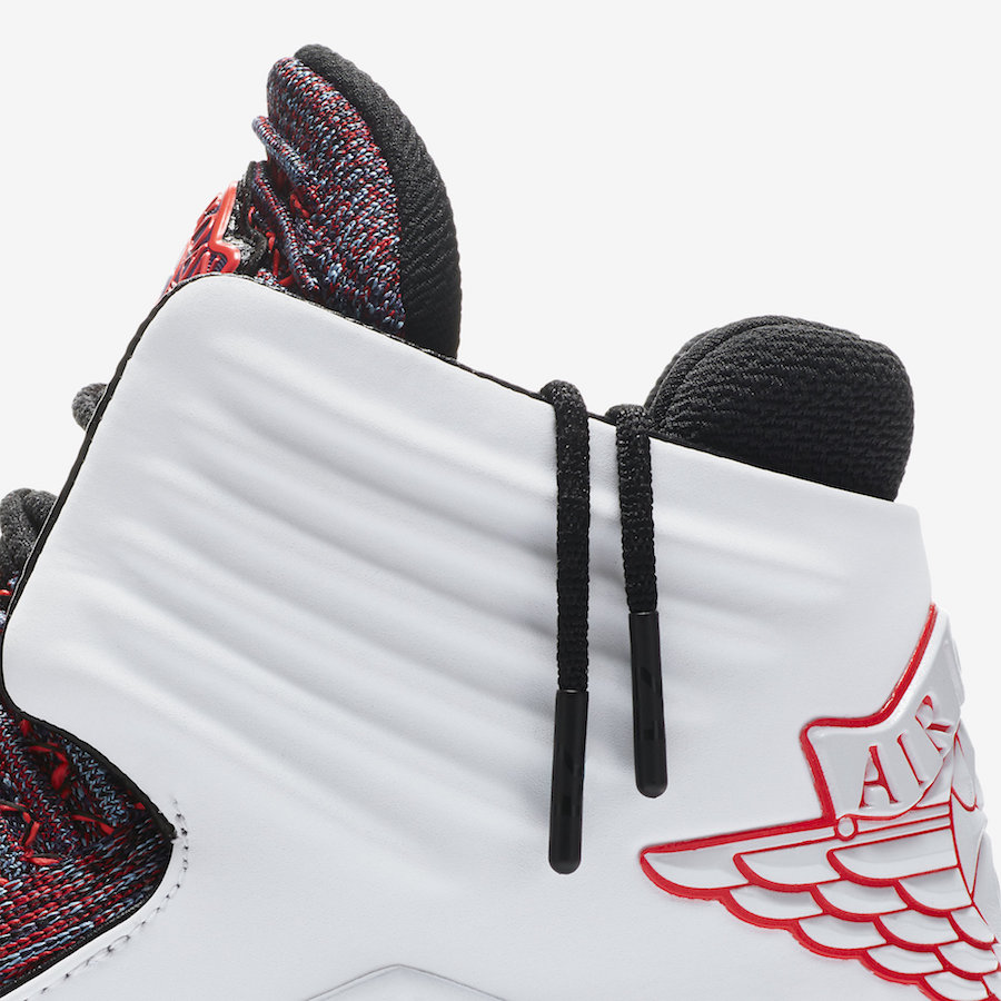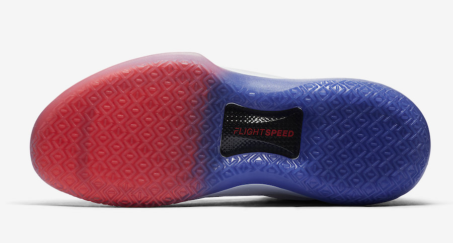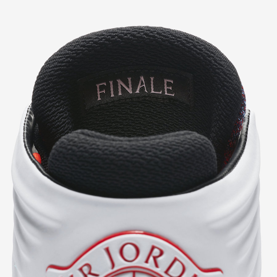 Si rien ne garantit encore qu’il s’agisse de l’ultime coloris des Air Jordan 32, un tel nom laisse à penser qu’on va bientôt voir débarquer les AJ33. En attendant de savoir ce que la marque nous réserve, jetons un œil à cette version Finale. L’empeigne en Flyknit est de plusieurs couleurs, mêlant du rouge tirant sur le rose et un bleu indigo. Ou peut-être du violet, désolé pour l’absence d’expertise chromatique. On retrouve ce mélange sur les logos Wings présents sur la languette, alors que ceux à ‘l’arrière du modèle sont intégralement rouge, contrastant avec la surcouche en cuir blanc qui entoure la cheville, blanc qui se propage sur la semelle intermédiaire. Celle extérieure reprend quant à elle les teintes plus colorées avec le rouge sur le devant et le violet plus à l’arrière. Enfin on notera l’inscription « Finale » au dos de la languette.