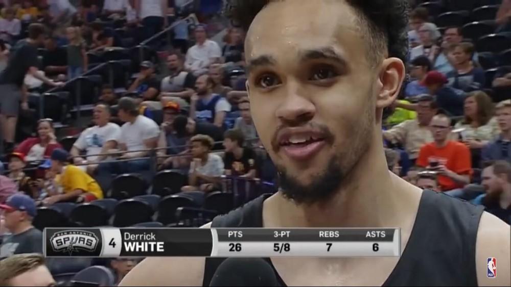 Avec le probable départ de Kawhi Leonard et celui déjà acté de Tony Parker vers les Hornets, une page se tourne du côté de San Antonio. Après avoir responsabilisé Dejounte Murray à la mène l’an passé, place à la jeunesse et à la reconstruction. Suite au départ de TP, parti rejoindre son pote Nicolas Batum pour deux ans et dix millions de dollars dans la franchise de son idole Michael Jordan, le poste de troisième meneur est disponible. Un poste qui semble du coup promis à… Derrick White. Le meneur de 24 ans a été choisi en 29ème position en 2017 alors qu’il évoluait jusque-là en NCAA chez les Buffalos du Colorado. Il figurait notamment au cours de son parcours universitaire dans la First-Team All-PAc-12, soit dans le cinq des meilleurs joueurs de la Pac-12 Conference. Les plus attentifs ont déjà eu l’occasion de le voir évoluer en Playoffs sous le maillots des Spurs l’an dernier. En effet, lors du premier tour face aux Warriors, Gregg Popovich n’avait pas hésité à le lancer dans l’arène durant le garbage time.