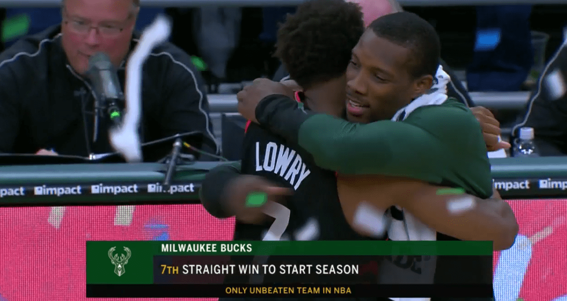 Et mercé la NBA, nous qui nous faisions une joie de départager les deux meilleures franchises de ce début de saison, et accessoirement leurs deux meilleurs joueurs. Pas de Kawhi ni de Giannis donc, le Grec récupérant après un coup reçu sur sa tête d’androïde alors que Kawhi Leonard a apparemment 42 ans puisqu’il ne peut pas jouer deux jours de suite. Mais parler uniquement des deux postes 3 les plus en vogue à l’Est serait faire injure au reste des rosters de Nick Nurse et Mike Budenholzer, alors oublions un peu les absents et parlons plutôt des présents. Car il y avait du beau monde cette nuit sur le parquet du Fiserv Forum. Et parmi tout ce beau monde ? Et bien ce sont les Bucks qui ont tiré leur épingle du jeu, et particulièrement ceux qui ont pu profiter des minutes et de l’espace laissé vacant par le Greek Freak. En premier lieu Ersan Ilyasova, puisque l’homme le plus postérisé de la Ligue s’est mis cette nuit au diapason de son équipe. Tranchant d’entrée et auteur au final d’une copie très propre (19 points et 10 rebonds), Hersanne Il Y A Sauva a montré que les coiffeurs de Coach Bud avaient également leur mot à dire. Car au delà de la performance, en deçà de ses standards d’ailleurs, de Khris Middleton, c’est la profondeur du roster qui a fait la différence aujourd’hui, ou en tout cas l’envie diamétralement opposée des supporting cast. Malcolm Brogdon de retour dans le starting five ? Solide. Thon Maker en sortie de banc ? Solide ? Tony Snell ? Toujours aussi utile des deux côtés du terrain. Rajoutez à cela les deux belles surprises Connaughton et DiVincenzo, et voilà que vous obtenez un groupe à la base solide, mais qui devient très chiant à jouer quand t’as le magicien d’Oz à la baguette.