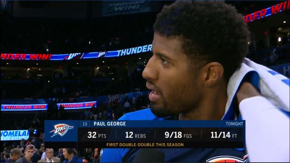 Paul George (12r/4a) & Russell Westbrook (8a/4r) score 32 PTS apiece to lead the @okcthunder to the 128-110 W! #ThunderUp pic.twitter.com/YNoxVliW2y