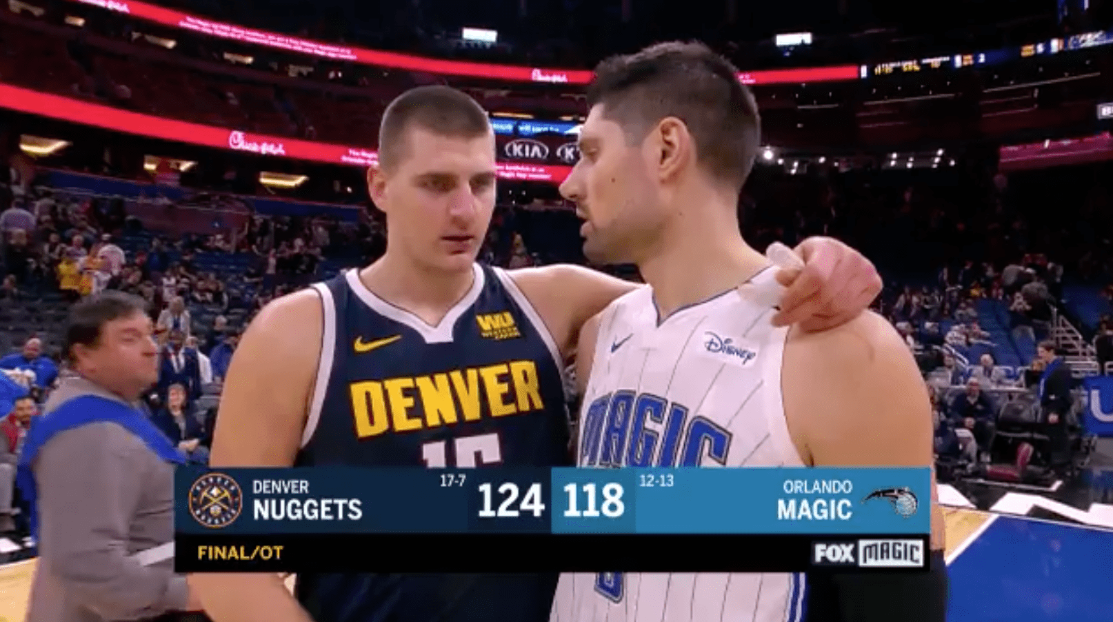 Le Magic n’était clairement pas censé gagner cette rencontre. Tout avait mal commencé pour les hommes de Steve Clifford qui étaient encore dans les attractions au début du match. Jokic s’amuse sur les cinq premières minutes et seul son adversaire direct, Nikola Vucevic, lui répond. A ce propos, c’est quand même super agréable d’avoir l’occasion de voir deux pivots aussi bons s’affronter dans le plus grand des calmes. Moves au poste bas, shoot en périphérie, passes soyeuses, les deux gars nous régalent avec leur énorme palette offensive. Malgré tout, les Nuggets sont clairement au dessus dans cette première mi-temps. Mais le score reste serré grâce à la bonne énergie d’Aaron Gordon et à l’inévitable Monténégrin. Notre Fournier national nous fait bien plaisir également, il finira la partie avec 26 points, 8 rebonds, 4 passes et une tripotée de shoots dans le corner. Mais voilà, malgré les bonnes performances individuelles d’Orlando, l’équipe pèche collectivement au pire moment. Si le Magic doit son salut à un tir de Terrence Ross à six secondes du terme, qui envoie les deux équipes en prolongations, le collectif s’est finalement effondré lors de l’overtime.