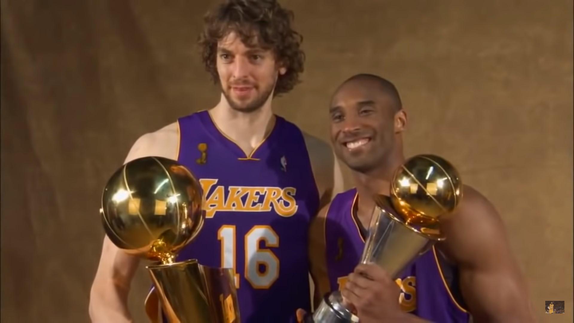 Suite à l’arrivée de Gasol, les Lakers roulent sur la concurrence pour terminer en tête de la Conférence Ouest avec un bilan de 57 victoires pour 25 défaites. Pau s’intègre parfaitement dans le collectif californien et dans le système de l’attaque en triangle prôné par le coach Phil Jackson. Kobe Bryant est aux anges et décroche son premier (et seul) titre de MVP cette saison-là. Autrement dit, le Black Mamba et ses Lakers sont de retour sur le devant de la scène après quelques années d’absence. En playoffs, Los Angeles tape tout le monde à l’Ouest et le titre NBA n’est plus très loin, mais les Celtics de Paul Pierce, Kevin Garnett et Ray Allen sont en mission et décrochent la bague tant convoitée par Kobe. La déception est évidemment immense pour Bryant, qui pensait enfin pouvoir fermer la bouche de tous ses détracteurs qui le disaient incapable de gagner sans le gros Shaquille O’Neal à ses côtés. Ce n’est cependant que partie remise pour Kobe et Los Angeles. L’année suivante, qui correspond à la première saison complète de Pau Gasol en Californie, les Lakers réalisent une saison de rêve avec 65 succès en régulière, puis un titre NBA décroché contre le Magic d’Orlando. Ça y est, Bryant a accompli sa mission. Champion NBA pour la quatrième fois de sa carrière et nommé pour la première fois MVP des Finales, Kobe rentre dans une nouvelle dimension. Et tout ça, ça aurait été impossible sans la présence de Pau Gasol. L’importance de ce dernier prend encore une nouvelle signification en 2010, quand l’Espagnol sort une série XXL face aux Celtics dans la revanche des Finales 2008. On pense notamment à son immense Game 7, dans lequel il termine avec 19 points et 18 rebonds. Les Lakers réalisent le back-to-back, Kobe Bryant dépasse Shaq en ajoutant une nouvelle bague à son compteur personnel, le tout avec un deuxième titre de MVP en prime.
