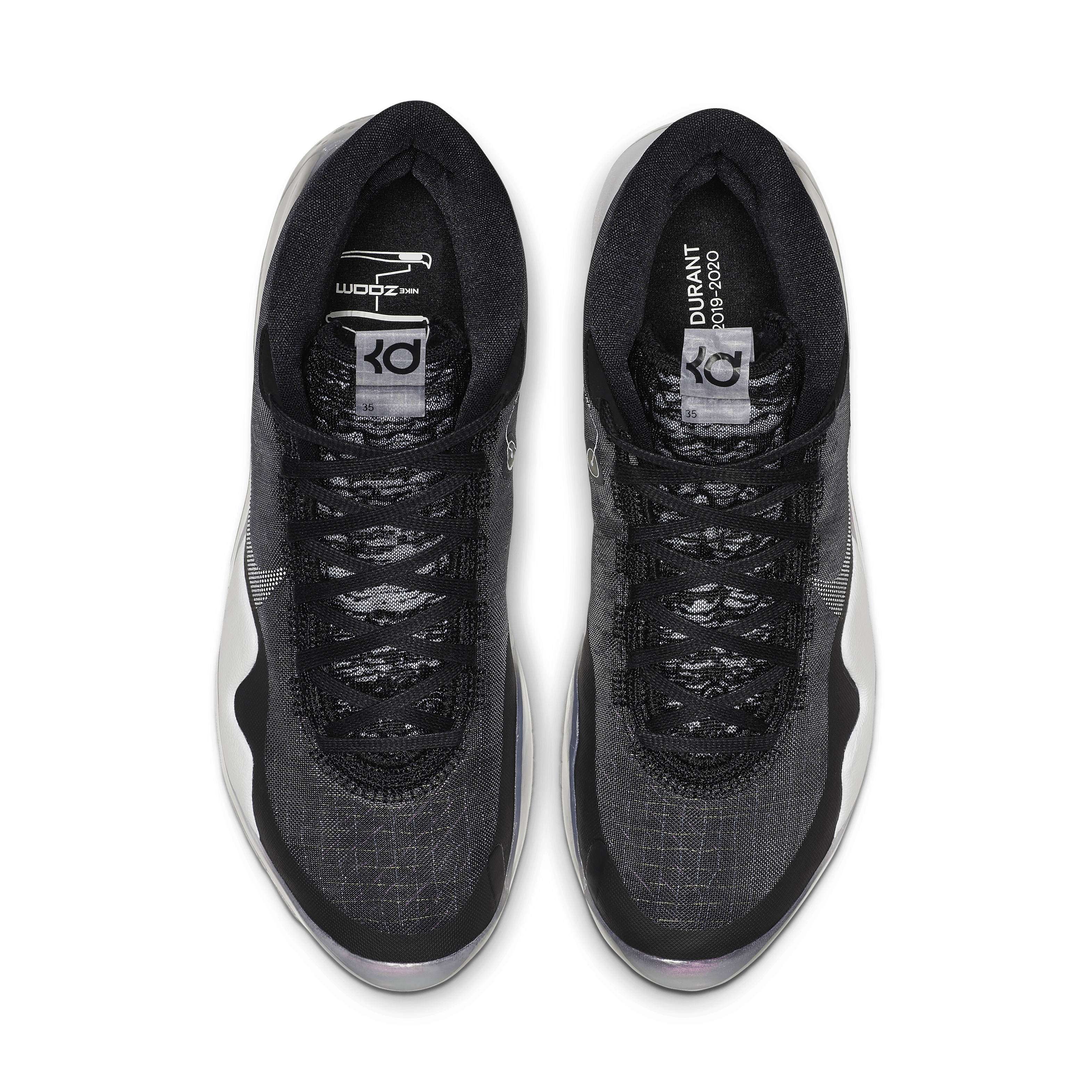Premier changement notable par rapport aux anciennes versions, la tige basse disparait pour laisser place à une tige intermédiaire offrant plus de maintien. Un gros virage qui lui donne des petits airs de Kyrie. Autre grosse nouveauté, la poche Air Zoom a été cousue sur l’ensemble de la semelle mais aussi directement sur le Flyknit pour plus de stabilité. De plus, cette empeigne en tissu étirable est équipée du système Quad Axial Flywire pour offrir plus de souplesse au pied qui a la sensation de rentrer dans un chausson. Il n’y a donc plus d’intermédiaire entre la bulle d’air et le Flyknit, une innovation étonnante qui pourrait vite faire ses preuves si sa solidité est confirmée. En tout cas, KD n’avait déjà pas besoin de ça pour se sentir chez lui en Finales NBA, maintenant il va carrément avoir l’impression de jouer en pantoufles. Sur le sommet du basket international comme à la maison quoi.