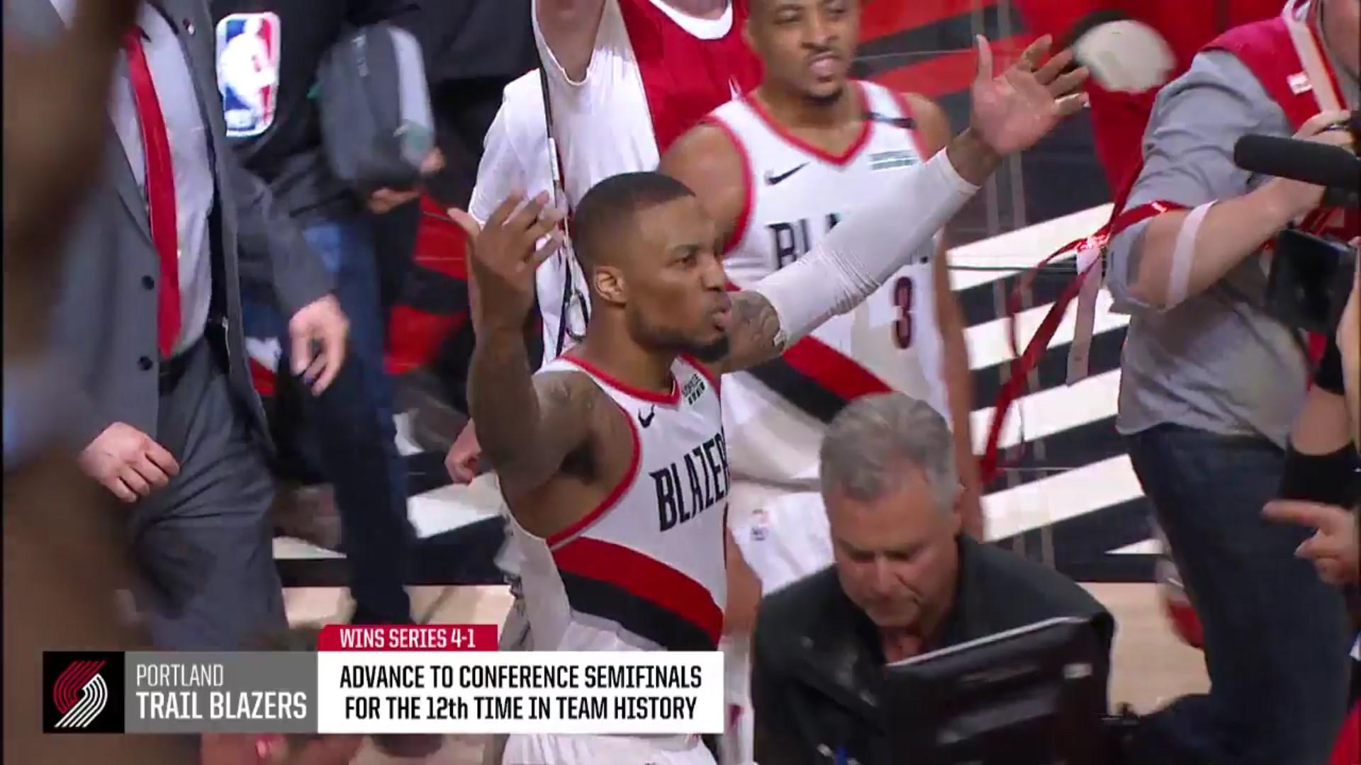 Tout ça, c’est pour les fans de statistiques et de records en tous genres. Mais on ne peut pas se limiter aux chiffres quand on voit le film du match. Pendant toute la première mi-temps, Damian Lillard a littéralement porté son équipe sur ses épaules. Quand vous marquez 34 points en deux quart-temps et que votre équipe ne mène que d’une unité à la pause, c’est que vous êtes un peu isolé. Face à une équipe d’Oklahoma City très adroite au shoot, les Blazers ont réussi à suivre le rythme grâce à un Dame Dolla en feu. Il fallait bien ça car à côté du meneur de Portland, il n’y avait pas grand chose niveau soutien offensif. Aucun autre joueur ne possédait plus de six points au compteur à la pause. Son pote du backcourt CJ McCollum, auteur lui aussi d’une superbe série et décisif en fin de match cette nuit, a écopé de sa troisième faute dans le… premier quart-temps. Résultat, il n’est plus entré en jeu lors de la première période. Lillard n’est lui pas sorti une seule fois au cours des 24 premières minutes, et il a joué l’intégralité du troisième quart-temps. Durant celui-ci, il était un peu moins chaud mais a enfin reçu un peu d’aide au scoring avec notamment McCollum, Al-Farouq Aminu et Enes Kanter. Sauf que lorsqu’il était sur le banc au début du quatrième, Portland a encaissé un 8-2, ce qui a permis au Thunder de prendre huit points d’avance, avant de creuser l’écart jusqu’à 15 points à sept minutes de la fin. La preuve que Dame est vraiment indispensable. Et puis derrière évidemment, il y a la remontée fantastique de Portland grâce à un gros effort collectif, avec un Lillard clutch puis légendaire pour tuer définitivement Oklahoma City.