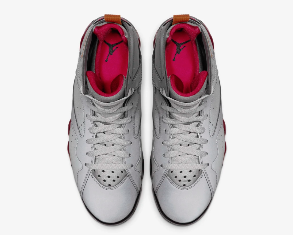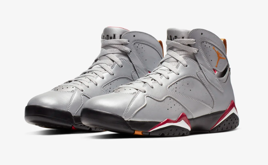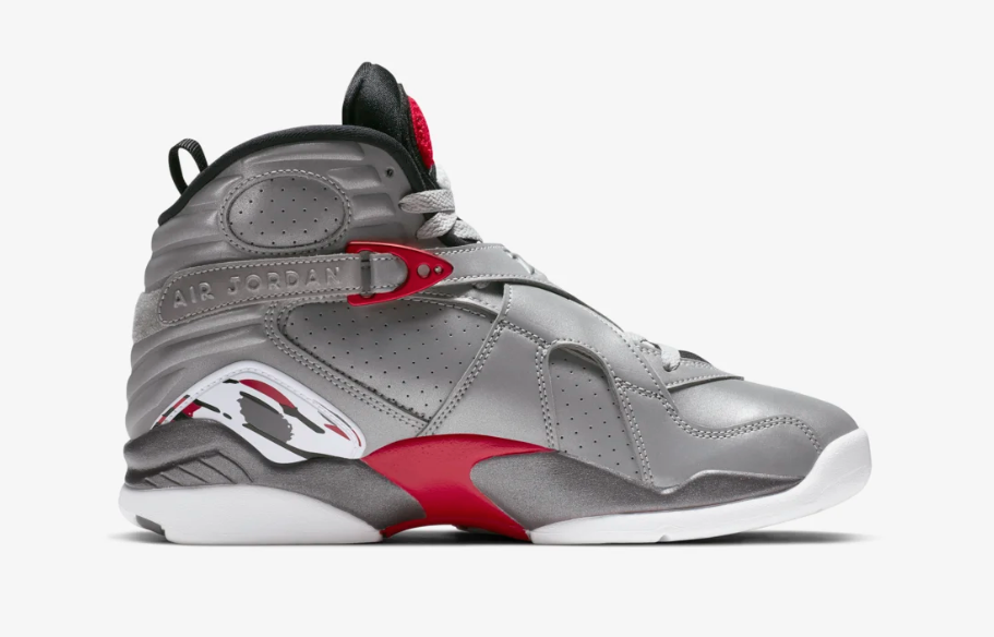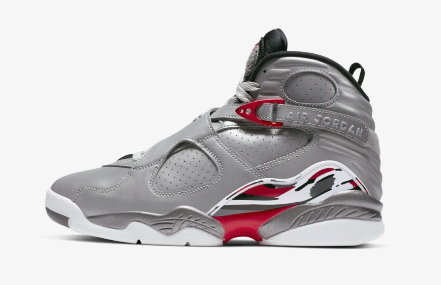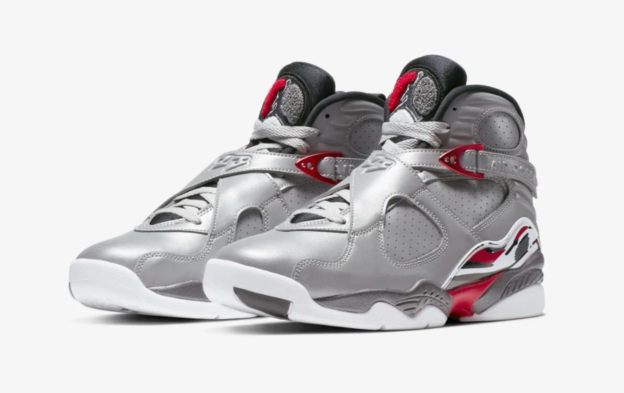 Ce sont donc les Air Jordan 6, 7 et 8 qui vont prendre ce thème de champion en ce mois de juin 2019. Les trois modèles subissent donc le même traitement, à savoir une base argenté réfléchissante – oui, d’où le nom – sur laquelle on trouve des détails rouges et noirs. on peut noter pour la Air Jordan 6 du premier titre que ce rouge est de l’infrared, contrairement aux deux autres paires qui partent sur une teinte plus foncée et moins flashy. les semelles ont également un autre point de différenciation entre les modèles : translucide pour les AJ6, noire pour les Air Jordan 7 et enfin blanche pour les huitièmes signature shoes de His Airness.