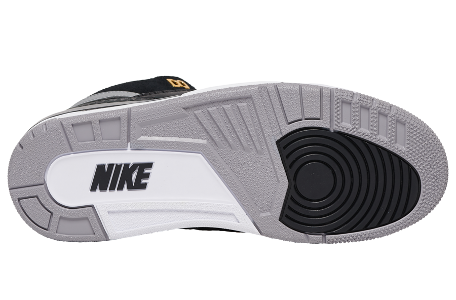Après un coloris Air Max 1 en mars pour cette version reloaded des Air Jordan 3 qui a fait son petit effet, c’est donc au tour d’autres teintes iconiques de venir sublimer les dessins de l’ami Hatfield. Une base en nubuck noir sur la plus grande partie du modèle, la même couleur au niveau du mudguard, du renfort plastique vers le talon ou encore de l’arrière de la semelle intermédiaire. Tout comme sur le Jumpman de la languette qui elle est grise, donnant du relief à l’ensemble, à l’instar des derniers œillets dorés. On retrouve ce gris sur le Swoosh du panneau latéral mais aussi sous le pied avec la semelle en gomme, complétée par quelques touches de noir et de blanc. La teinte immaculée termine aussi la semelle intermédiaire. Comme toujours, les imprimés éléphant sont bien présents, cette fois-ci noircis au maximum.