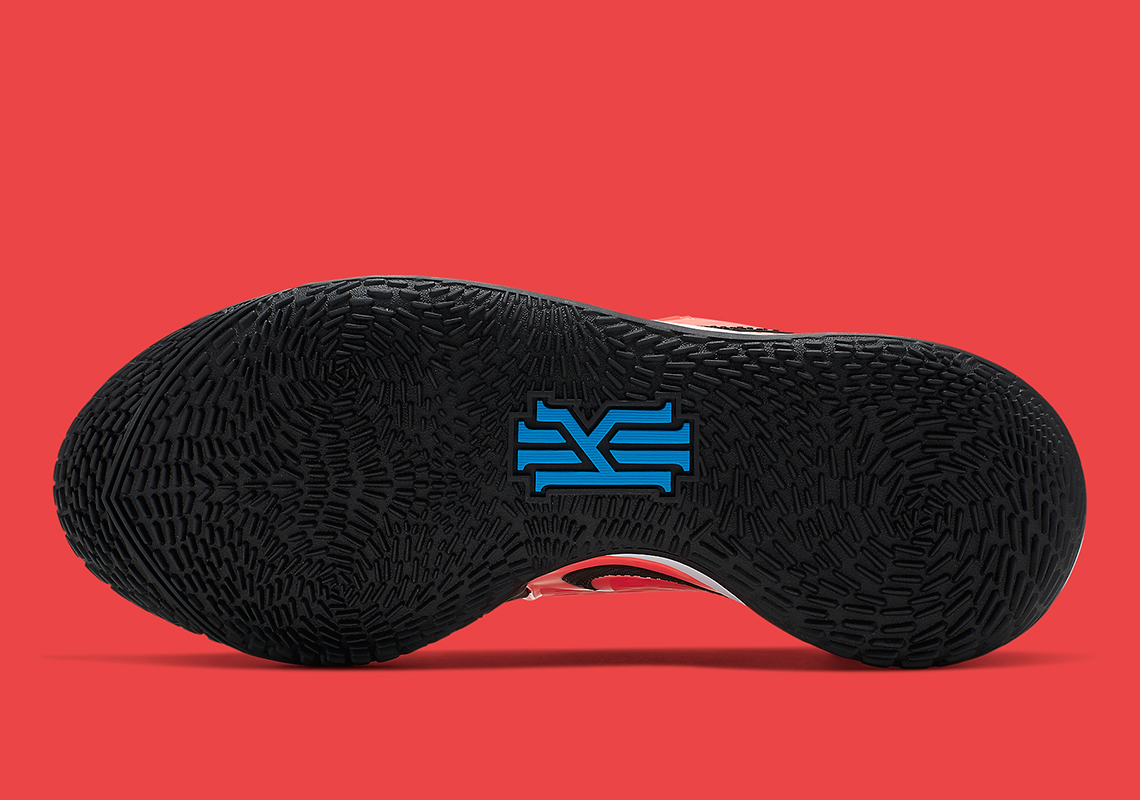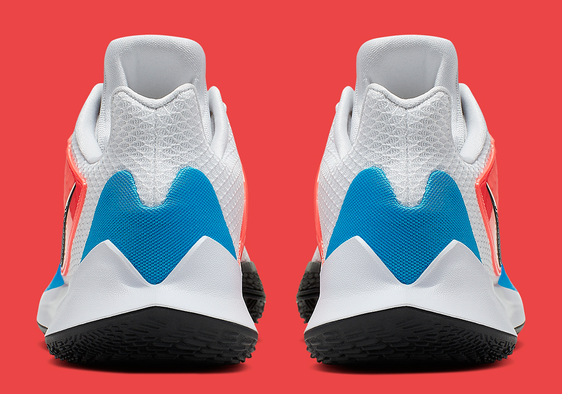 On vous avait déjà présenté en détail le premier coloris très sobre de ces Low 2 il y a quelques semaines mais il semblerait que Nike n’ait pas décidé de se limiter aux couleurs de la nouvelle franchise de Kyrie Irving. Après un modèle noir et blanc hyper classique et qui doit avoir trouvé son public du côté de Williamsburg, c’est cette fois le Thunder qui semble mis à l’honneur. Sean Marks nous préparerait-il un trade pour récupérer Chris Paul en l’échange de son meneur All-Star ? Oups… Loin de nous l’idée de vouloir faire échouer les négociations mais il est vrai que la marque à la virgule a l’air bien au courant de l’actualité de la NBA puisque le premier coloris était sorti quelques heures seulement après la signature de l’ancien bras droit de LeBron à Brooklyn. Toujours est-il que même si ce n’est qu’une simple coïncidence, on retrouve donc des tons très familiers des fans d’Oklahoma City avec du blanc, du bleu clair et du rouge qui tire vers l’orangé au niveau du système de laçage. Une pompe qui respire l’été et que l’on a envie de porter lors d’une longue soirée barbecue autour du playground ou même pour aller courir autour du lac avec les dernières lueurs du soleil. On retrouve évidement le logo KI sur la languette et la semelle intérieure ainsi qu’une forme bien connue des accrocs aux shoes du point guard qui auront reconnu l’inspiration de la Kyrie 3.