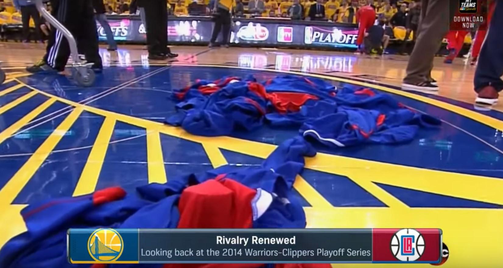 Pour rappel, en guise de protestation avant le Game 4 contre les Warriors (l’enregistrement était sorti le 25 avril), tous les joueurs des Clippers avaient enlevé leur maillot d’échauffement pour le laisser au milieu du terrain, à l’envers afin que le logo de la franchise soit invisible. Ce geste avait notamment été imité par LeBron James et le Heat en forme de soutien aux Clippers.