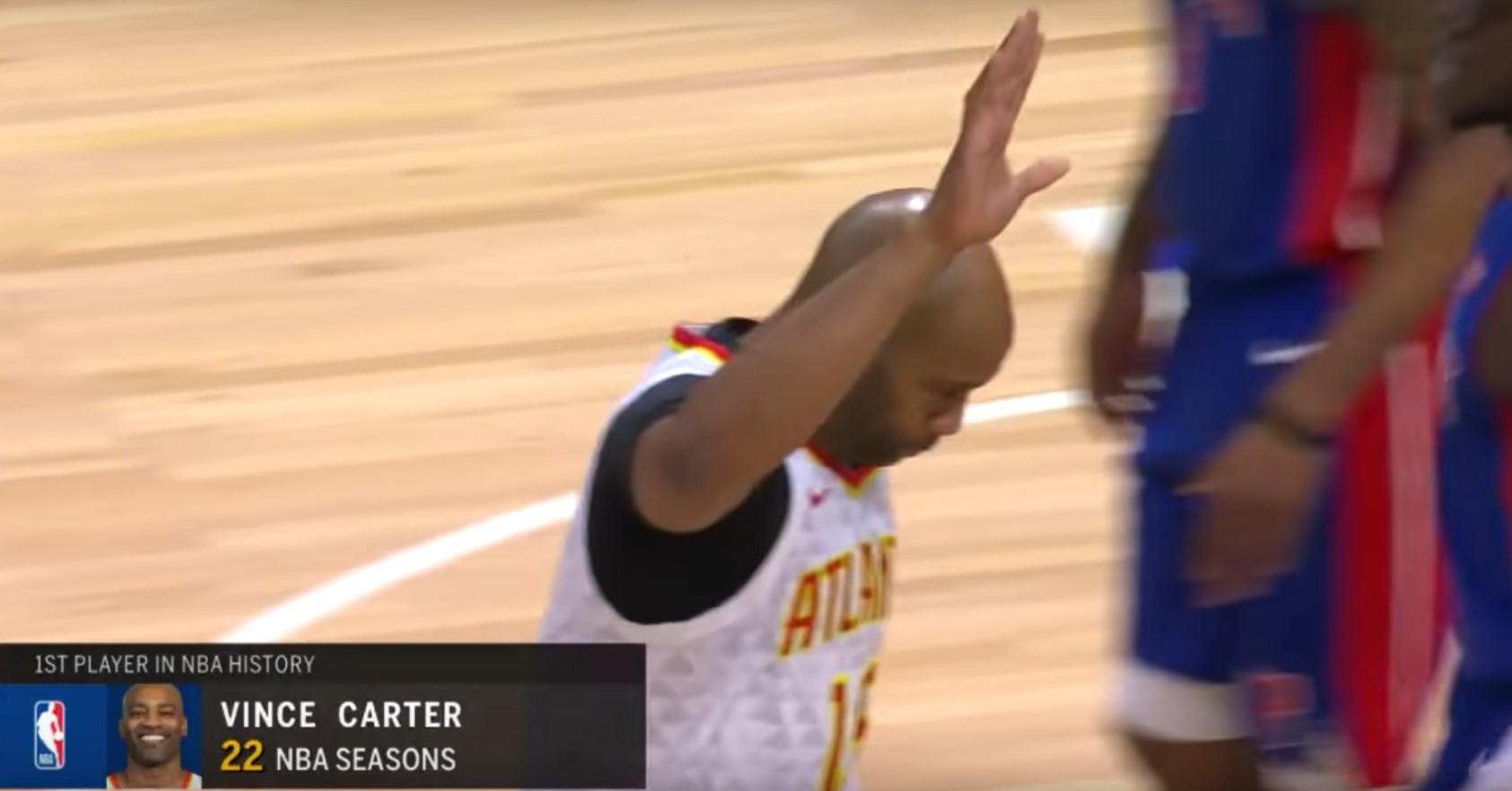 Vince Carter checks in for the first time, making it officially 22 seasons, the most for any player in NBA history 🙌 pic.twitter.com/hfDQcDmt3I