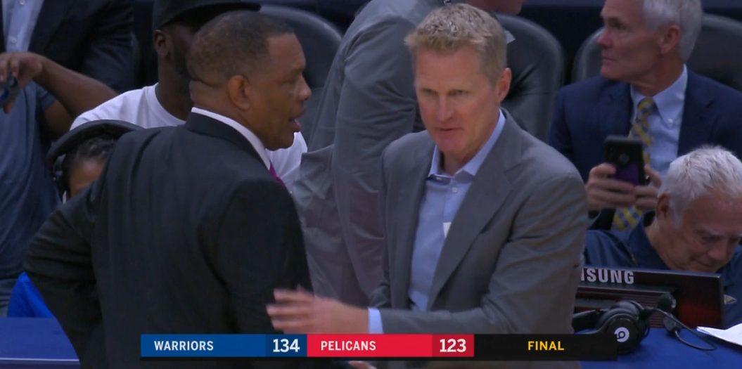 Ceux qui ont vécu de près le début de saison des Warriors se frottaient les yeux pour y croire. Deux matchs, deux défaites, ça arrive, mais surtout deux énormes branlées ramassées face aux Clippers (logique) et au Thunder (hein ?). Deux matchs indigents au possible, deux parodies de basket, deux fois 48 minutes à se rendre compte, choqués que nous fûmes, que ces Warriors-là sont terriblement en difficulté. L’heure de se réveiller ? C’était donc cette nuit face aux Pelicans, victime toute désignée pour un démarrage tardif de Stephen Curry et ses ouailles.