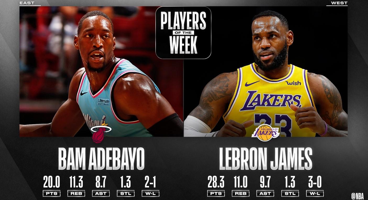 Joueurs de la semaine en NBA : Bam Adebayo et LeBron James récompensés, Miami et L.A. sont plus que jamais à la mode