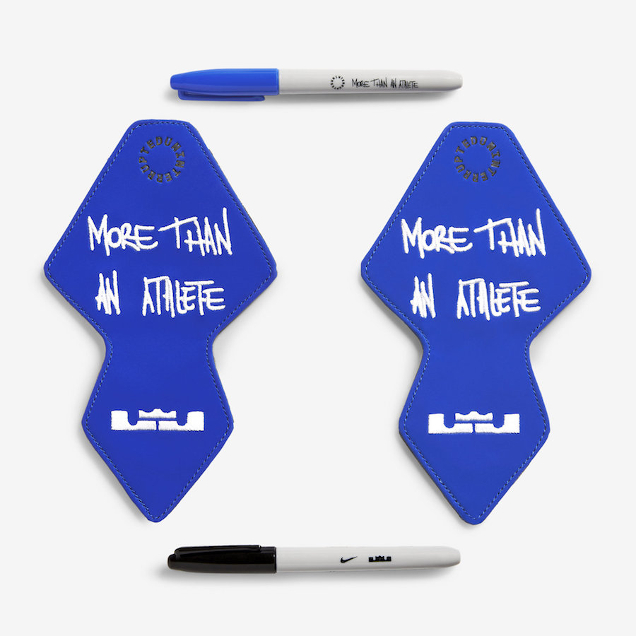 Cela fait déjà un petit moment que la mode des chaussures personnalisées est arrivée en NBA et les joueurs sont de plus en plus nombreux à se saisir d’un marqueur pour passer des s/o en masse ou rendre hommage à des proches et des célébrités. Le I can do all things de Stephen Curry sur les Under Armour est un gros classique mais on se souvient aussi des chaussures marquées en mémoire de Chyna, la soeur d’Isaiah Thomas, lors de son retour sur les planches peu après le décès de sa frangine. Décortiquées en long et en large dans les médias, les sneakers sont donc un moyen comme un autre de transmettre une idée ou un message. Bron est allé encore plus loin dans le délire avec les Nike LeBron 17 More Than An Athlete vendues avec deux marqueurs noir et bleu. La semelle extérieure blanche est lisse pour permettre à chacun d’y écrire les mots qu’il souhaite avec la possibilité d’effacer sans peine pour adapter son message au jour du match ou à l’adversaire mais aussi à l’actualité. Lors de votre prochain match de Dep 3, vous pourrez désormais vous la jouer trashtalker en annonçant à votre vis-à-vis que vous allez lui en mettre 50 dans la vue ou bien défendre la planète en rappelant à tous de bien fermer le robinet lorsque vous vous brossez les dents. Pour compléter votre mood du moment, trois languettes interchangeables (noire, bleu et blanche) sont également mise à disposition de manière à matcher avec l’empeigne habituelle en Battleknit.