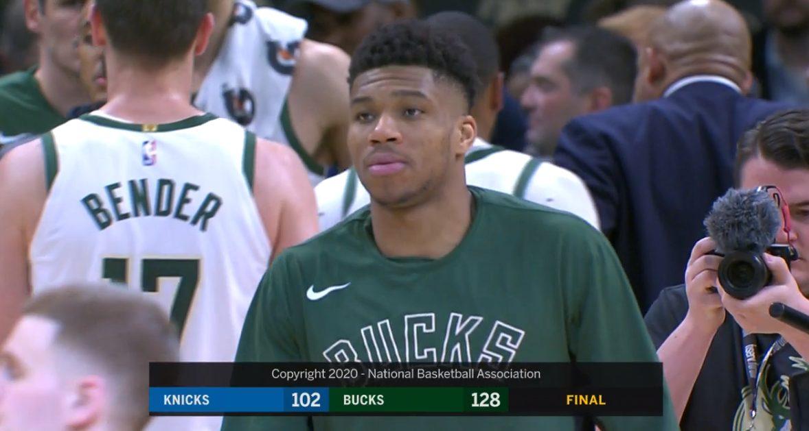 Giannis Antetokounmpo a fait ça vite et bien face aux Knicks : 37 points en 21 minutes, même pas sûr qu’il se soit douché après