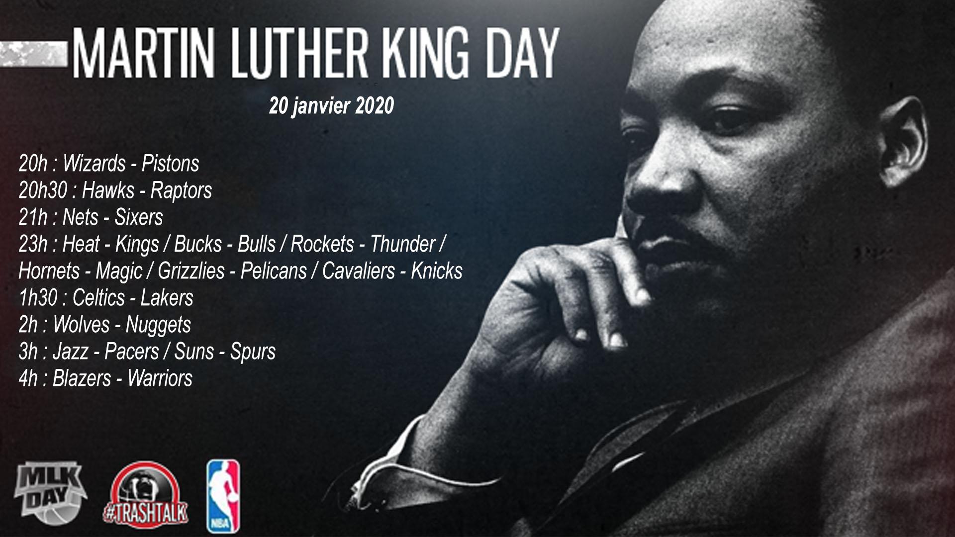 Férié depuis 1986, le Martin Luther King Day est un rendez-vous incontournable pour la NBA, qui honore la mémoire du révérend chaque année avec un superbe programme. En ce 20 janvier 2020, on est particulièrement gâtés, alors on va en profiter au maximum.