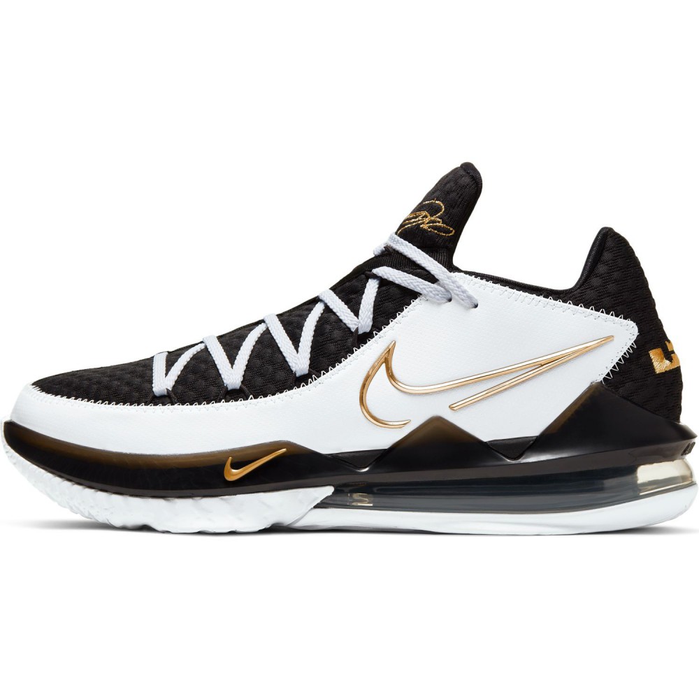 Procurez-vous maintenant sur Basket4Ballers.com la Lebron 17 Low Gold qui associe une coupe basse noire, blanche et piquée de détails dorés à une puissante combinaison d’amorti, d’absorption des chocs et de réactivité.