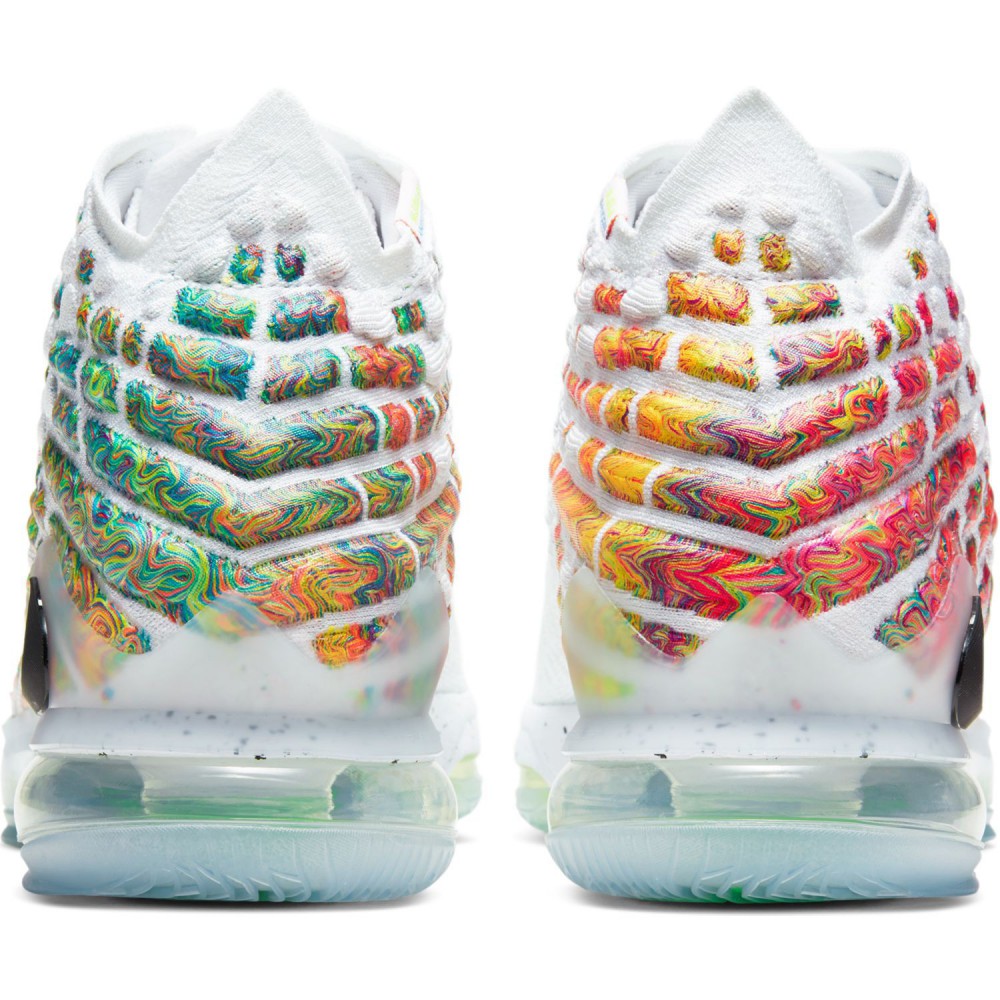 Depuis qu’il fait du cinéma, LeBron James ne pense plus qu’à ça. Alors que le tournage de Space Jam 2 semble avoir bien avancé l’été dernier et que la sortie est prévue pour 2021, le King a décidé de rendre hommage à un monument du cinéma. Du moins pour les fans de basket puisqu’il s’agit de White Men Can’t Jump ou Les Blancs ne savent pas sauter pour ceux qui préfèrent la version FR. En effet, le coloris des Nike LeBron 17 Command Force est directement inspiré des Nike Air Command Force Hot Lime portées par le personnage fictif Billy Hoyle incarné par Woody Harrelson. Encore cette note acidiulée présente jusqu’à la semelle avec une bulle d’air abillée de ce vert néon tandis que l’inscription « Force » a été remplacée par « LeBron » sur les languettes avec toujours cette typographie bien particulière. A l’arrière, on a quasiment affaire à une oeuvre d’art avec l’équivalent d’une palette de couleur d’un artiste peintre. On aime ou on aime pas, mais on ne peut pas repprocher aux designers la simplicité et le manque de recherche ni même de couleurs. Le reste de l’empeigne est blanche et semble défier les adversaires du joueur des Lakers de venir lui piétiner les pieds pour voir de quel bois il se chauffe. En tout cas, pas de doute. BronBron n’a peut-être jamais participé à un Slam Dunk Contest mais on sait qu’il en a sous la semelle et qu’il peut faire décoller ces sneakers très haut. Même à 35 ans.