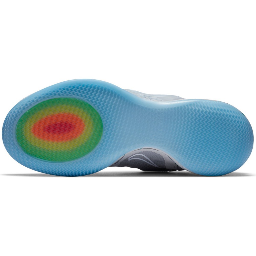 Oh le délice. Avis à tous les amoureux de cinéma et de basketball, vous allez tomber amoureux à l’instant où vous verrez cette paire. Amoureux d’accord, mais pas question de perdre de temps, car le Doc’ et Marty vous attendent, ils ont une petite place pour vous dans la DeLorean. Où vous allez ? Pas certain de l’époque, mais ce dont nous sommes en revanche sûrs, c’est que vous aurez toujours une classe infinie avec une chaussure inspirée de la Air Mag. D’ailleurs, si vous pouvez essayer avant votre retour de nous choper deux trois tips sur le potentiel de Bronny James et l’évolution de la calvoche d’Evan Fournier, on est preneur hein. Bon allez, trêve de bavardage, on s’attaque à la description de ce bijou. Bien sûr, l’empeigne du modèle est dans le même gris clair que celui de la mythique sneaker de Marty McFly, avec un Swoosh plus clair qui ressort en relief sans non plus dominer le débat. La semelle intermédiaire blanche est elle évidemment d’un blanc légèrement grisé, et est parsemée du légendaire motif bleu fluide qui la rend unique. Pour la semelle extérieure, c’est bien un bleu translucide qui est choisi, mais là encore pas de surprise. À l’avant, les quatre led présentes sur la Air Mag originales sont emprisonnées dans une bulle, et les voyants lumineux relatifs à la batterie peuvent, si vous le souhaitez et via l’application, s’illuminer du même bleu lagon que la paire de Marty. Hein ? Les lacets…? Ah oui, les deux ficelles qu’il fallait dans le temps accrocher pour serrer la chaussure… Bah non il n’y en a pas, on est plus au XXe siècle, allô. Ça se passe direct sur votre téléphone et une application dédiée qui verrouille votre pied à votre convenance. Attention cependant à ne pas partir au basket avec 10% de batterie, ça pourrait la foutre mal. Bon, pour les têtes en l’air, il y a toujours moyen de serrer tout ça manuellement grâce aux deux boutons situés sur la semelle de la chaussure.