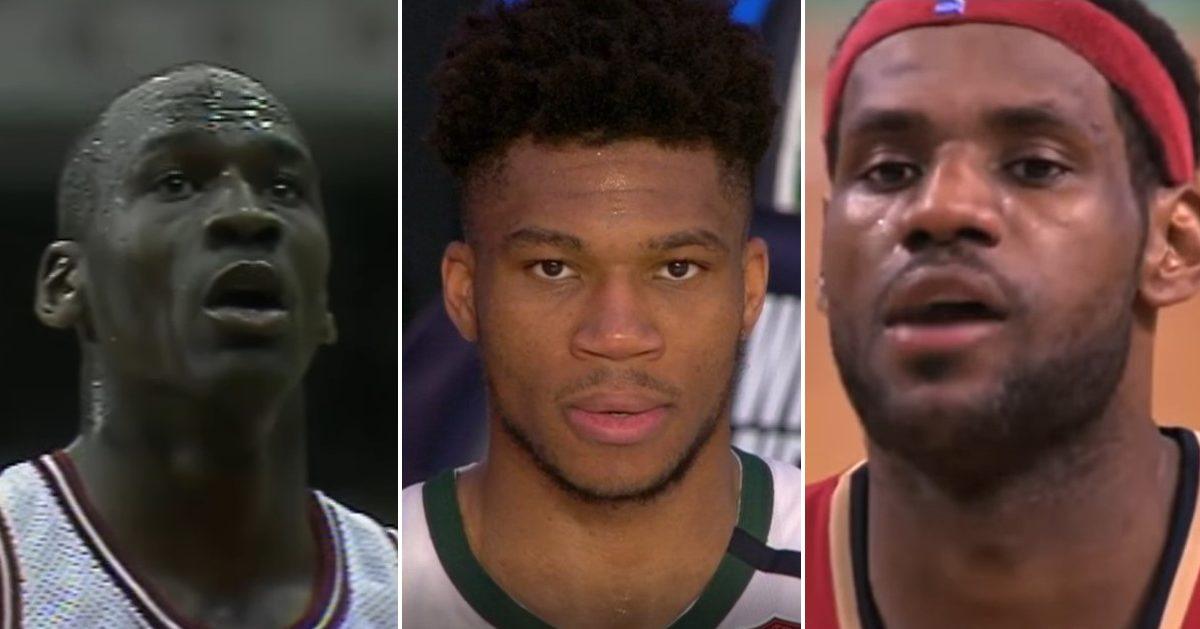 Le plus gros point commun entre Giannis Antetokounmpo et Michael Jordan, c’est que le Freak est sur le point de rejoindre MJ dans le cercle très fermé des joueurs ayant remporté le titre de MVP et de Défenseur de l’Année la même saison (ils seront trois quand le MVP du Freak sera officiel, Hakeem Olajuwon étant le troisième). Jojo a réussi cet exploit en 1988, à l’âge de 25 ans… comme Giannis. Grosse domination des deux côtés du terrain, saison statistique énorme, mais même coup d’arrêt en Playoffs. Jordan et Antetokounmpo prennent la porte lors des demi-finales de Conférence Est, les Bulls et les Bucks s’inclinant sèchement sur le même score de 4-1, respectivement contre les Pistons et le Heat, deux équipes qu’on pourrait qualifier de bête noire pour Chicago et Milwaukee.