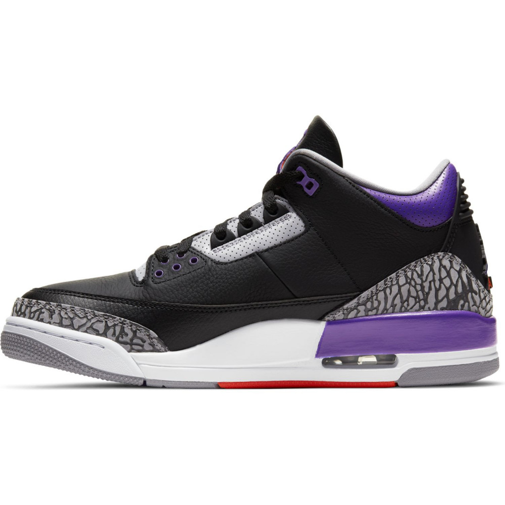 Procurez-vous maintenant sur Basket4Ballers.com les Air Jordan 3 « Black Lakers » version modifiée du coloris « Black Cement » d’origine qui arbore l’emblématique couleur violette des Los Angeles Lakers pour un look rétro inspiré de la chaussure légendaire de Michael Jordan.
