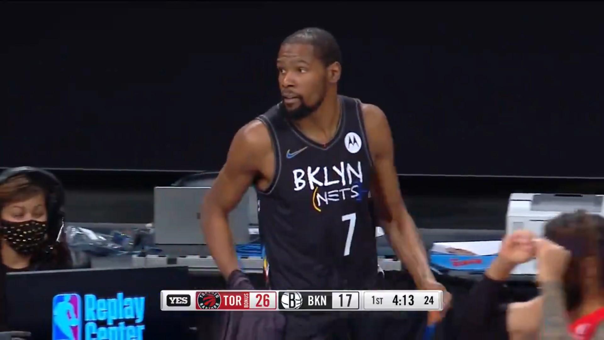 C’était l’affaire WTF de la nuit. Protocole COVID oblige, Kevin Durant n’a joué que 19 minutes face aux Raptors mais surtout, il… n’a pas commencé dans le cinq, une phrase que l’on ne pensait jamais dire avec KD. Et pour cause, ce n’était jamais arrivé dans sa carrière.