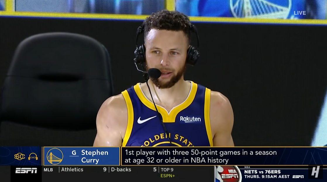 - Stephen Curry n’a eu besoin que de 35 minutes pour en coller… 53 aux Nuggets, tout en prenant le soin de dépasser Wilt Chamberlain au classement des meilleurs scoreurs de l’histoire des Warriors