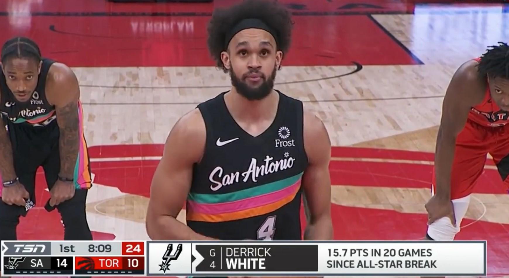 Décidément, le destin a décidé de se mettre sur le chemin des Éperons en condamnant une nouvelle fois la pépite texane, Derrick White. Après avoir subi une opération à un orteil l’été passé, se l’être cassé en janvier, et une dent pétée en mars, voilà que Derrick s’est fait une entorse de la cheville. Il devrait ainsi être éloigné des terrains jusqu’à la fin de la saison, la poisse.