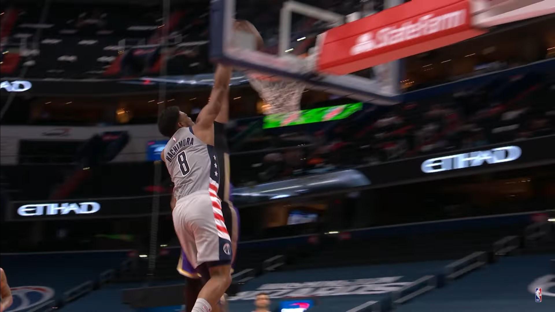 #2 : décidément, les Wizards ont maltraité les Lakers cette nuit. Même Anthony Davis a pris cher par Rui Hachimura.
