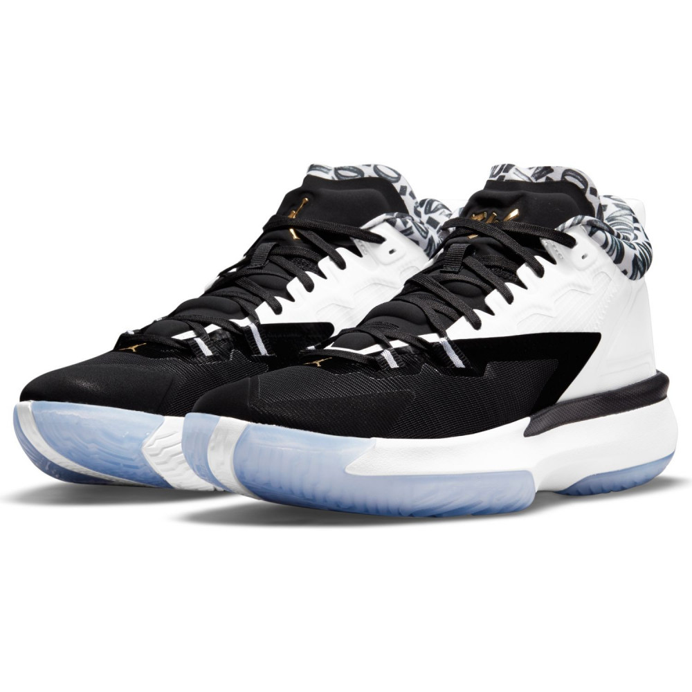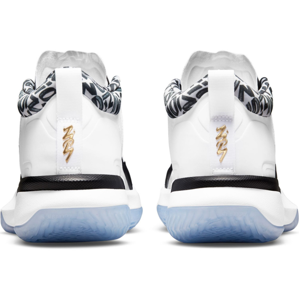 Signé par Jordan Brand avant même d’avoir posé un pied en NBA, cela fait longtemps que l’intérieur des Pelicans est promis à une carrière spéciale. Jamais un lycéen n’avait autant fait parler de lui depuis un certain LeBron James. Comme le Chosen One, le phénomène originaire de Caroline du Nord ne portera désormais plus que des chaussures portant son propre blaze. Après deux ans de développement en interne, la marque au Jumpman nous dévoile enfin les signature shoes de Zion Williamson premières du nom. Les Jordan Zion 1 Gen Z ont envahi les stores et la lignée ne devrait plus les quitter durant les 15 prochaines années. En tout cas, c’est tout ce que l’on souhaite à Zanos car cela sera le signe d’une carrière réussie. Privé du ROY par Ja Morant à cause d’une blessure qui l’a longtemps tenu éloigné des parquets, le first pick 2019 s’est déjà bien rattrapé. Désigné All-Star dès sa saison sophomore, il tourne à 26,8 points et 7,1 rebonds de moyenne sans problème physique pour le ralentir. Ses chaussures vont également dans ce sens pour protéger ses pieds et ses articulations avec son style de jeu basé sur la puissance. On retrouve la technologie Air Strobel sur l’ensemble de la semelle avec une couche de Zoom Air supplémentaire à l’avant du pied pour éviter qu’un incident de chaussure semblable à celui qu’il avait eu en NCAA ne se reproduise sur les parquets de NBA. Pour ce premier coloris, on reste sur du basique avec du blanc et du noir, permettant de mettre en avant le Z présent sur l’empeigne, son initiale mais aussi un symbole de vitesse et d’unicité. Le molleton intérieur au niveau de la cheville reprend les lettres de son prénom au cas où l’on n’aurait toujours pas remis son nom alors que l’on se familiarise avec son logo éclair sur l’arrière de la paire et qu’un Jumpman doré couronne la languette. Une sorte de tirage de langue vers Puma ou Li-Ning dont Zion a décliné les offres pourtant plus avantageuses pour rejoindre la Jordan Brand Family.