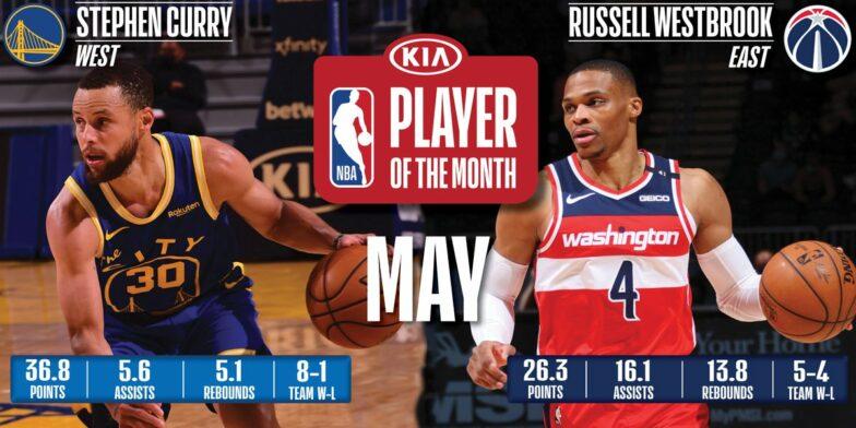Stephen Curry et Russell Westbrook sont les joueurs du mois de mai et c’est loin d’être une surprise. Du record, un palmarès qui grossit, des équipes qualifiées pour le play-in à la force des épaules et le dernier virage de la saison qui s’annonce tout simplement incroyable pour les deux meneurs. On a hâte de voir tout ça.
