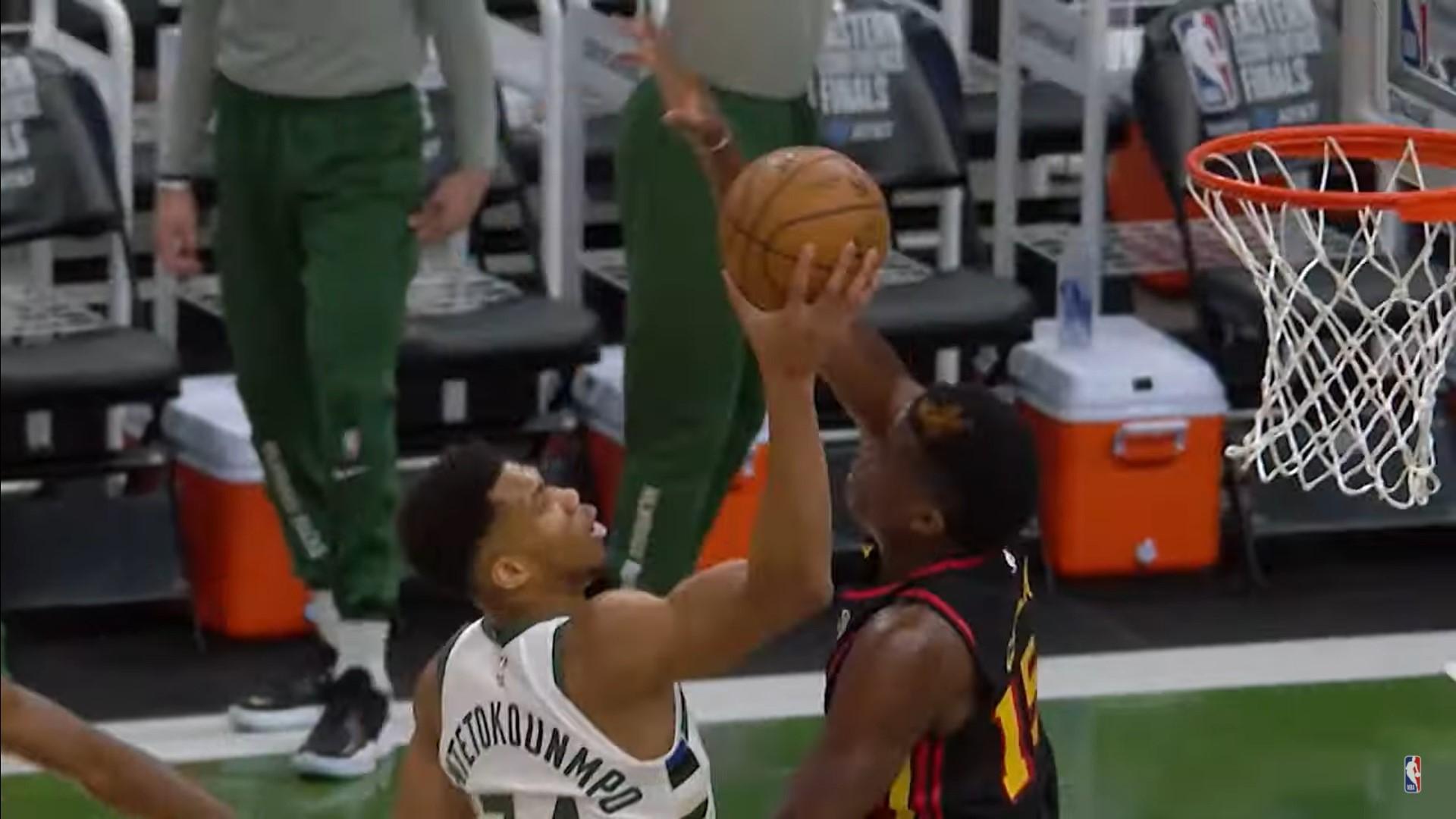 #1 : c’était la soirée des Bucks. La preuve, Brook Lopez est monté sur Clint Capela pour un gros tomar.