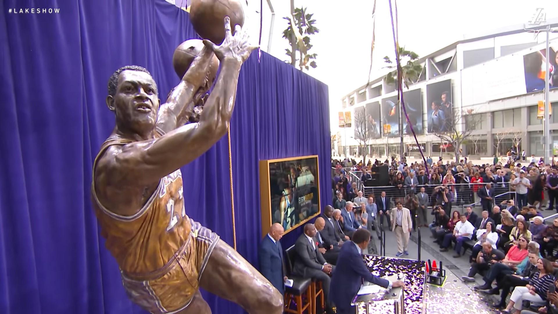 6 avril 2018. Staples Center. Ce jour-là, les Lakers doivent affronter les Timberwolves pour l’un des derniers matchs de la saison régulière. Comme la franchise californienne est déjà éliminée de la course aux Playoffs, ce match n’a rien d’immanquable, par contre la cérémonie qui se déroule juste avant l’est beaucoup plus. La preuve, le gratin du basket made in Los Angeles est là : Jerry West, Magic Johnson, Shaquille O’Neal, Kareem Abdul-Jabbar… ça en fait du beau monde n’est-ce pas ? Toutes ces légendes, elles sont présentes pour un homme : Elgin Baylor. À l’âge de 83 ans, Elgin est sur le point de recevoir l’une des plus grandes distinctions imaginables pour un basketteur NBA, à savoir une statue. La statue, c’est avant tout un symbole d’immortalité. Elle permet à un joueur ou une personnalité de ne jamais tomber aux oubliettes malgré le temps qui passe et les générations qui se succèdent. Et ce 6 avril, celle de Baylor est officiellement révélée, rejoignant ainsi les statues déjà présentes de Magic, West, Kareem, Shaq et Chick Hearn, le légendaire commentateur des Lakers.