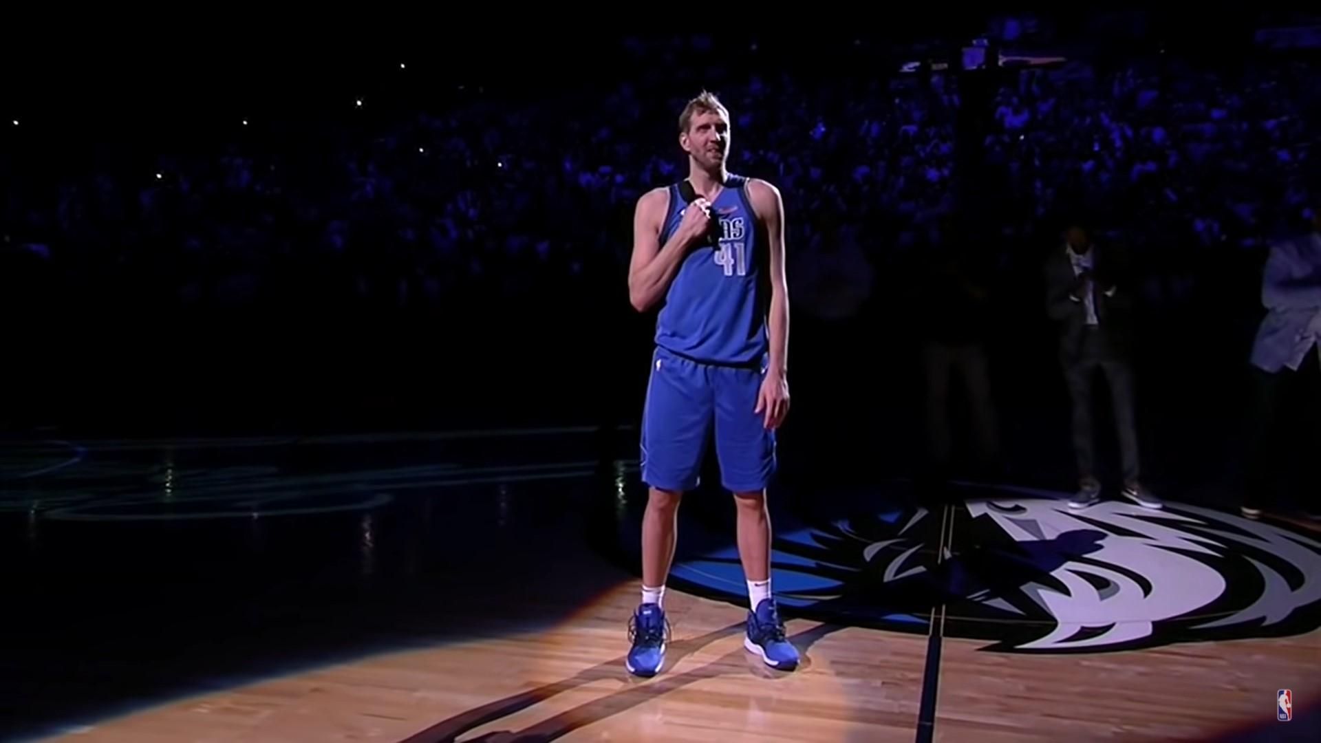 Dirk Nowitzki, le seul et l’unique. Parmi les légendes qui représentent véritablement une franchise, l’Allemand est tout en haut avec les Tim Duncan et Kobe Bryant pour ne citer que les grands de sa génération. C’est simple, Nowitzki est synonyme avec les Dallas Mavericks, point barre. En même temps, quand vous mettez plus de 31 000 points en 21 saisons sous le même maillot, quand vous emmenez une franchise qui n’avait jamais rien gagné au sommet de la NBA, quand vous représentez les Mavs au All-Star Game à 14 reprises avec en plus un titre de MVP de la saison régulière et de MVP des Finales, difficile de ne pas être considéré comme le meilleur joueur de l’histoire de Dallas. On aime bien Luka Doncic hein, mais il a encore beaucoup de chemin à parcourir s’il veut un jour récupérer ce statut. Bien entendu, le retrait de maillot de Dirk Nowitzki sonne comme une évidence. La question n’est pas de savoir si, mais quand est-ce le jersey de Dirk ira au plafond de la salle des Mavericks. Eh bien Mark Cuban, le boss de la franchise texane, a donné quelques indications via Callie Caplan du Dallas News : visiblement, cela pourrait se faire dès cette année, à condition que Dirk mette ses voyages sur pause. Parce que bon, ça serait quand même mieux qu’il soit là quoi. Autre petite info intéressante, visiblement ça bosse déjà sur une statue pour honorer la légende des Mavs. Justement, on parlait récemment des joueurs méritant un tel honneur, et Dirk était évidemment dans le lot. On l’imagine déjà immortalisé avec son fameux fadeaway sur une jambe, souvent imité mais jamais égalé.