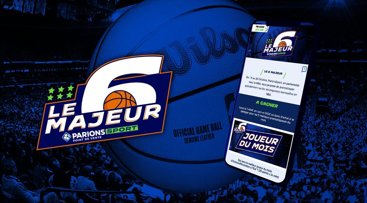 Avec cette nouvelle saison NBA qui vient de commencer, c’est un nouveau jeu qui vient de voir le jour du côté de notre partenaire ParionsSport point de vente : le 6 Majeur. Un jeu auquel la participation est gratuite, sur simple inscription, et qui peut rapporter de belles sommes ou des bons d’achats dans le NBA Store ! En quoi ce jeu consiste ? Comment participer ? On vous explique tout ci-dessous.