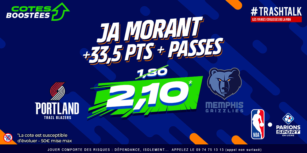 Le pari NBA du jour, avec la cote boostée TrashTalk : Ja Morant qui affronte les Blazers, y’a moyen que ça donne un gros carton