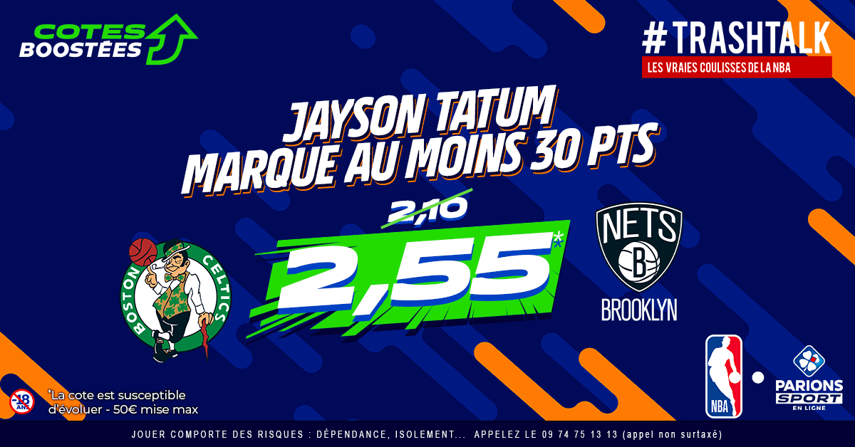 Jayson Tatum marque au moins 30 points contre les Nets (cote de 2,10 boostée à 2,55) : après un petit retard à l’allumage, Jayson Tatum semble enfin avoir trouvé son rythme de croisière en cette saison 2021-22. En effet, il n’y a pas beaucoup de joueurs qui sont plus chauds que JT en ce moment en NBA. Demandez donc aux Hawks, aux Lakers, au Thunder et aux Rockets. Toutes ces équipes-là ont encaissé minimum 30 points de la part de Tatum sur les sept derniers jours. 34, 37, 33, 30, le tout à 50% au tir dont 38% du parking. Les Nets seront-ils la cinquième ? Franchement ici on le sent bien. Aux côtés d’un Jaylen Brown qui revient à peine de blessure (il pourrait d’ailleurs être forfait ce soir), Tatum devra une nouvelle fois sortir le grand jeu pour permettre aux Celtics de rivaliser avec l’équipe possédant le meilleur bilan au sein de la Conférence Est. Alors, ça se tente non ? Dernier détail à avoir en tête, la mise maximum sur cette cote boostée est de 50 euros.