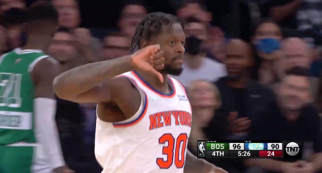 Si la dernière victoire des Knicks face aux Celtics fut marquée par le festival d’Evan Fournier et le buzzer complètement dingue de R.J. Barrett, elle a aussi été caractérisée par ce thumbs down de Julius Randle, clairement frustré par les sifflets des fans des Knicks durant la rencontre. Mais un jour plus tard, une fois la tension retombée, Julius a tenu à s’excuser.