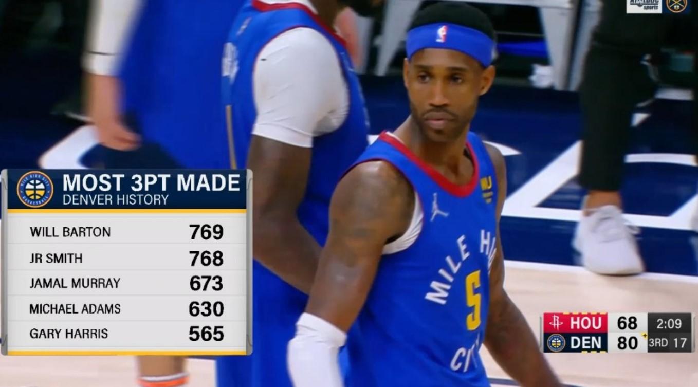 Privés de Nikola Jokic cette nuit contre les Rockets, les Nuggets ont pu compter sur une perf vintage de DeMarcus Cousins pour s’imposer. Mais la soirée a aussi été marquée par un autre événement : Will Barton est devenu le shooteur à 3-points le plus prolifique de l’histoire de la franchise, devant le légendaire J.R. Smith.