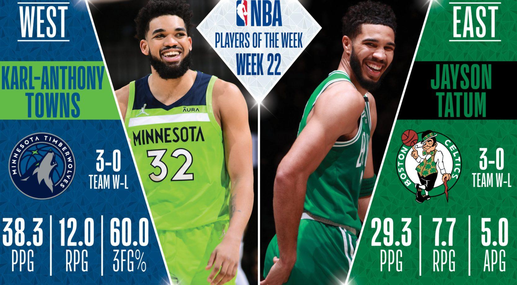Karl-Anthony Towns et Jayson Tatum élus Joueurs de la semaine : envie d’écrire le même titre qu’il y a quinze jours mais on ne le fera pas
