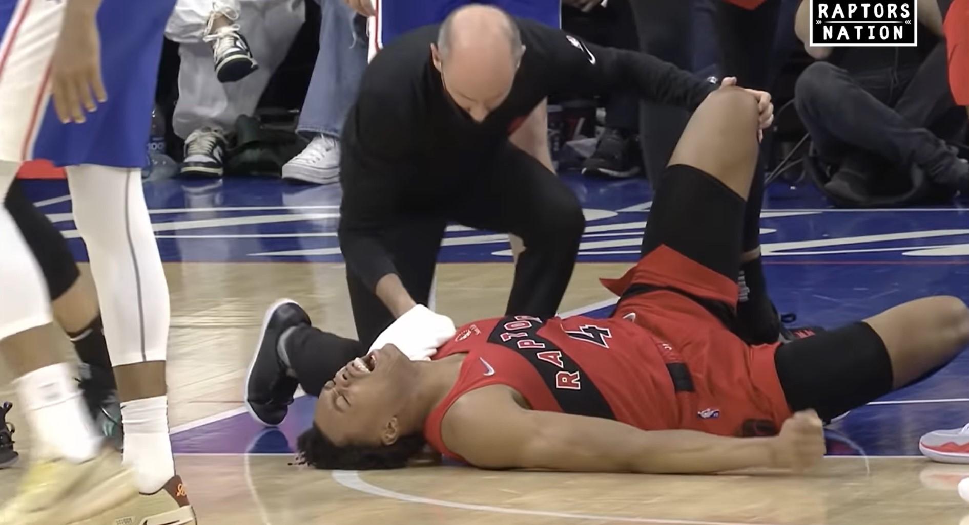 Scottie Barnes just went down with an injury, hope he’s good 🙏🏼 pic.twitter.com/p33Jhm5C5O