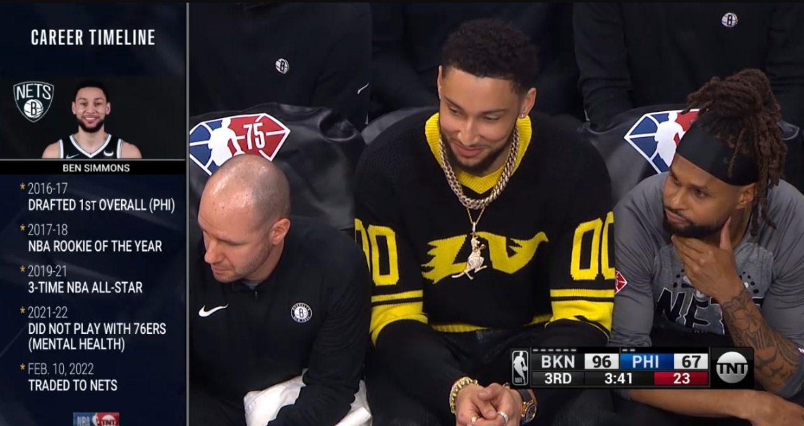 Il devait revenir pour le Game 4, mais finalement il matera la rencontre depuis le banc avec ses lunettes oranges comme lors de l’ensemble des rencontres précédentes. D’après Adrian Wojnarowski d’ESPN, Ben Simmons ne jouera pas la quatrième manche de la série entre Brooklyn et Boston demain au Barclays Center. La news est tombée ce dimanche soir pendant le match entre Denver et Golden State, de quoi enfoncer un peu plus les fans des Nets qui espéraient que le retour du Boomer donne un petit coup de boost à une équipe de Brooklyn au fond du trou. La raison de ce retournement de situation ? Visiblement Bennie se serait réveillé avec une douleur au dos ce matin alors qu’il s’était entrainé hier. Lien direct de cause à effet ou simple problème de matelas pour Simmons ? Mystère mystère mais les Nets et le joueur ont préféré faire une croix sur la rencontre de lundi. Forcément, on peut se demander si le scénario actuel de la série entre Boston et Brooklyn a eu un impact sur cette décision parce que bon, on va pas se mentir hein, ça sent quand même très fort le voyage à Cancun après la troisième défaite en autant de matchs hier. Officiellement, Simmons n’a pas été déclaré forfait pour les potentielles rencontres qui pourraient suivre le Game 4 de demain soir. Mais on imagine mal aujourd’hui l’Australien jouer la moindre minute sous ses nouvelles couleurs cette année, année qui devrait donc se transformer en saison blanche pour l’ancien joueur des Sixers.